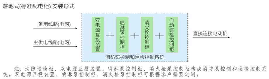 消防巡檢成套柜(含: 自動(dòng)巡檢控制柜、雙電源互投裝置、噴淋泵控制柜、消火栓泵控制柜)作為消防管網(wǎng)供水專(zhuān)用設(shè)備,與自動(dòng)控制消防泵組配套,實(shí)現(xiàn)同機(jī)聯(lián)動(dòng),廣泛應(yīng)用于油庫(kù)、碼頭、電廠(chǎng)、化工等行業(yè)自動(dòng)消防滅火系統(tǒng),和適用于多層及高層各類(lèi)民用建筑及公共建筑的消防栓給水系統(tǒng)和自動(dòng)噴淋滅火系統(tǒng)等各