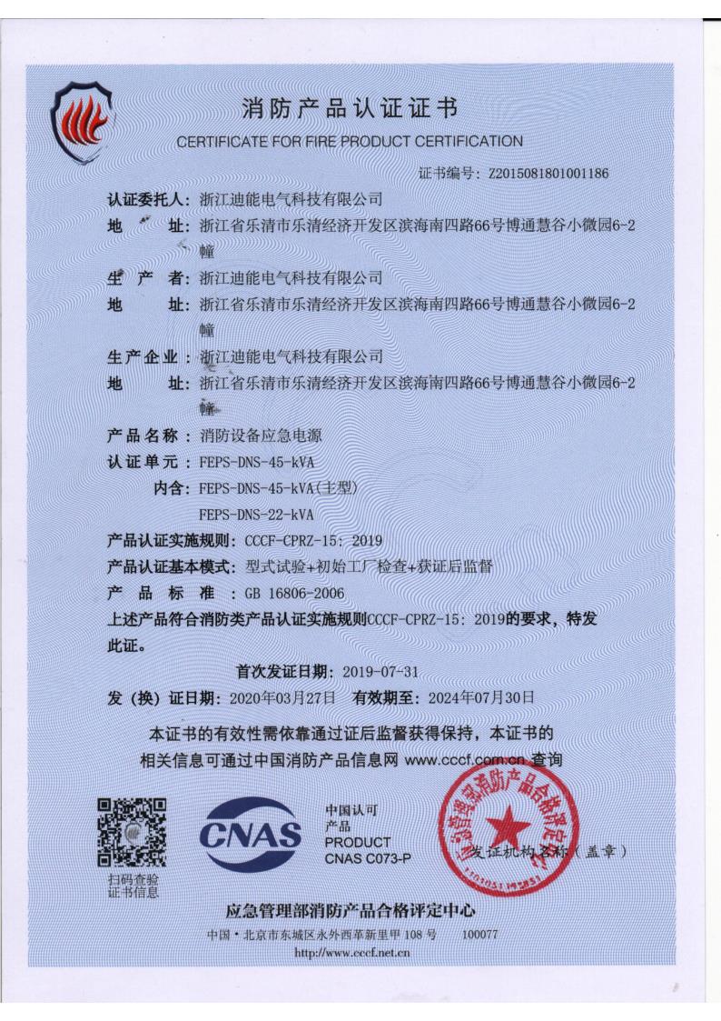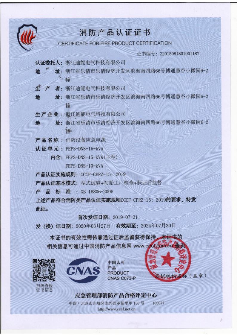 FEPS-DNS-15KVA 10KVA證書